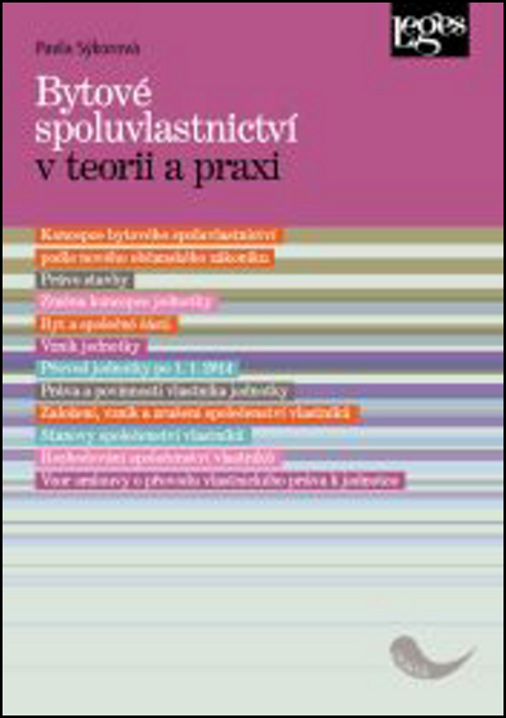 Příručka se podrobně zabývá bytovým spoluvlastnictvím, které bylo rekodifikací soukromého práva vtěleno do nového občanského zákoníku. Autorka podrobně vysvětluje koncepční změny, ke kterým došlo, a srovnává je s předchozí úpravou v zákoně o vlastnictví bytů. Většinu problematických ustanovení k bytovému spoluvlastnictví se snaží překlenout výkladem a pomoci tak praxi s řešením problémů do doby, než se k nim vysloví soudní judikatura. Nový občanský zákoník např. nově vymezuje jednotku, jejíž součástí je nejen byt, ale také společné části nemovité věci. Katastry nemovitostí proto vedou jak jednotky vymezené podle zákona o vlastnictví bytů, tak jednotky vymezené novým občanským zákoníkem. Další koncepční změnou je zavedení dvoufázového registračního principu u společenství vlastníků jednotek a s tím souvisejícího zavedení blokačního mechanismu, který má motivovat vlastníky jednotek k založení společenství vlastníků jednotek. Autorka se blokačním mechanismem zabývá i v historickém kontextu. Nový občanský zákoník dále upravil obsahové náležitosti stanov společenství vlastníků jednotek a určil lhůtu, do které je třeba dát staré stanovy do souladu s novým občanským zákoníkem. Autorka čtenáři poskytuje návod, v čem a v jaké lhůtě je potřeba staré stanovy přizpůsobit nové právní úpravě. Poradí např. také členovi výboru společenství vlastníků jednotek, který má povinnost si počínat s péčí řádného hospodáře a nemusí být vlastníkem jednotky. Na vztah nově zavedené superficiální zásady a bytového spoluvlastnictví je v publikaci upozorněno nejen historickým exkurzem do této problematiky, ale především komparací s úpravou německou, rakouskou, švýcarskou a severoamerickou, kde je superficiální zásada více či méně absolutizována. V této souvislosti se autorka vypořádává i s otázkou, zda je možné založit bytové spoluvlastnictví v rámci práva stavby. Autorka se problematikou bytového spoluvlastnictví zabývala nejen při svém působení v Komisi pro aplikaci nové civilní legislativy, ale také při své přednáškové činnosti (katastrální úřady, ministerstva, Úřad vlády ČR, Úřad průmyslového spoluvlastnictví). Ambicí autorky bylo nastínit z jejích zkušeností ty nejpalčivější problémy, se kterými se v praxi setkala, a přinést jejich řešení. Publikace tak není jen teoretickou příručkou, ale mnoho životních situací z oblasti bytového spoluvlastnictví je demonstrováno na příkladech. Publikace je určena nejen právníkům všech profesí a studentům právnických fakult, ale také široké veřejnosti.