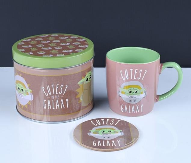 Dárková sada Star Wars: Mandalorian - Baby Yoda pro fanoušky Mandaloriana a Baby Yody 1x hrnek, 1x plechovka a 1x podtácek oficiálně licencovaný produkt Dárková plechovka pro fanoušky nejroztomilejšího dítěte v galaxii. The Child aka Baby Yoda zdobí keramický hrnek, korkový podtácek s vinylovým povrchem i samotnou plechovou krabici. Detaily zboží Parametry Výška: 11 cm Šířka: 13 cm Objem: 300 ml Váha: cca 515 g Materiál keramika kov korek vinyl