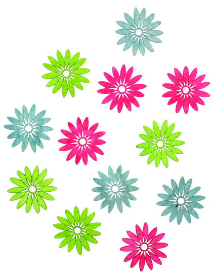 Dřevěné kytičky v pestrých barvách jsou určeny k vytváření dekorací.