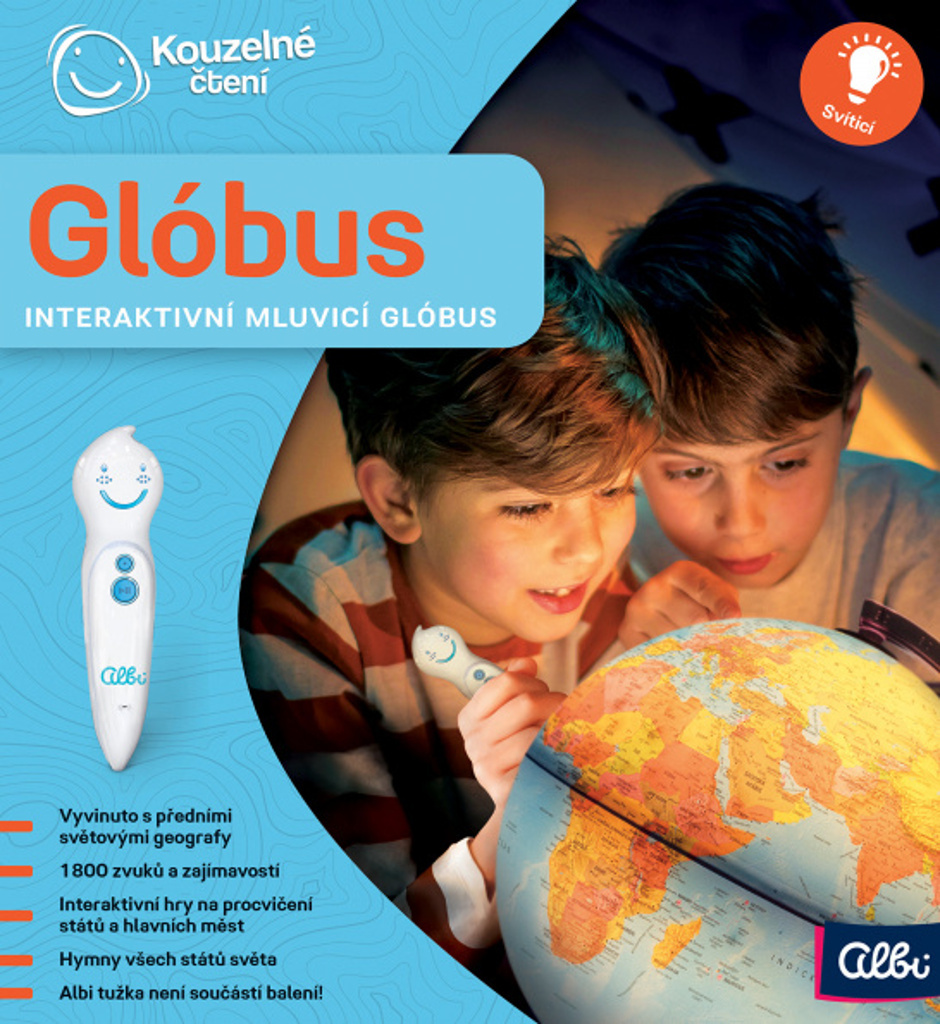 Pomocí Albi tužky z Kouzelného čtení můžete interaktivní glóbus rozmluvit a dozvíte se mnoho užitečných a zajímavých informací o téměř 200 zemích světa. Dozvíte se o nich důležitá fakta, hlavní města, něco o dané populaci, politické geografii, můžete si poslechnout hymnu všech států a spoustu dalších informací.