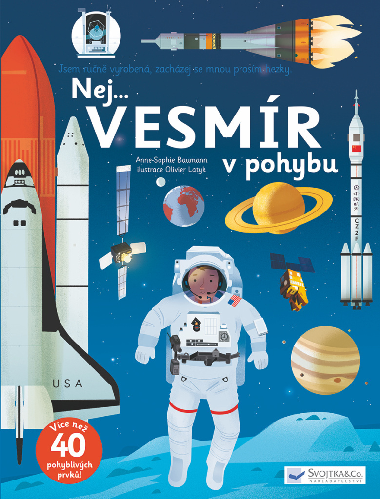 Jak se kosmonauti připravují na cestu do vesmíru? Z čeho se skládá raketa? Proč se Marsu říká rudá planeta? Jaká je poloha Země ve sluneční soustavě? Kniha Nej… VESMÍR v pohybu poskytuje odpovědi na všechny tyto i na mnohé další otázky v uceleném a zábavném formátu. Díky informacím z první ruky poskytnutým astronauty, astronomy a experty v oboru tato kniha nabízí vše, co potřebujete vědět, a je průvodcem, který čtenáře vezme na fantastickou cestu ke hvězdám a ještě dál! Více než 40 pohyblivých částí pro praktickou ukázku zázraků vesmíru!