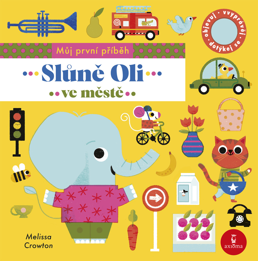 Slůně Oli se vydalo do města na nákupy a užilo si hezký den. Úžasný interaktivní příběh s textilními dotykovými prvky, odklápěcími okénky a zrcátkem. Nejmenší děti v této knize také seznámí s barvami, čísly a zvuky zvířátek a budou mít za úkol hledat žlutou kačenku, která se ráda schovává.