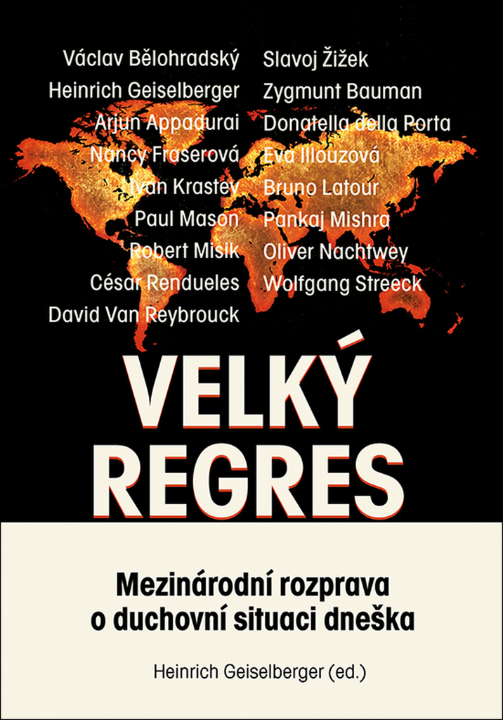 V knize Velký regres, vycházející souběžně ve třinácti jazycích, sedmnáct intelektuálů, renomovaných sociologů, politologů a filozofů, z nichž mnozí jsou české veřejnosti známi (například nedávno zesnulý Zygmunt Bauman, Slavoj Žižek nebo Václav Bělohradský), pátrá po příčinách a souvislostech znepokojivého stavu, v němž jsme se ocitli. Mnohé nasvědčuje tomu, že svět, především ten západní, nezadržitelně vstupuje do temného věku, tedy do éry, kterou můžeme přiléhavě nazvat obdobím regresu. Po éře, v níž vládl historický optimismus a kdy se zdálo, že ideály liberální demokracie již definitivně zapustily kořeny a jejich šíření v čím dál větší části světa už nic nezastaví, přichází bolestné prozření a deziluze, s níž je spojena nejistota, destabilizace, rozvrat a chaos.