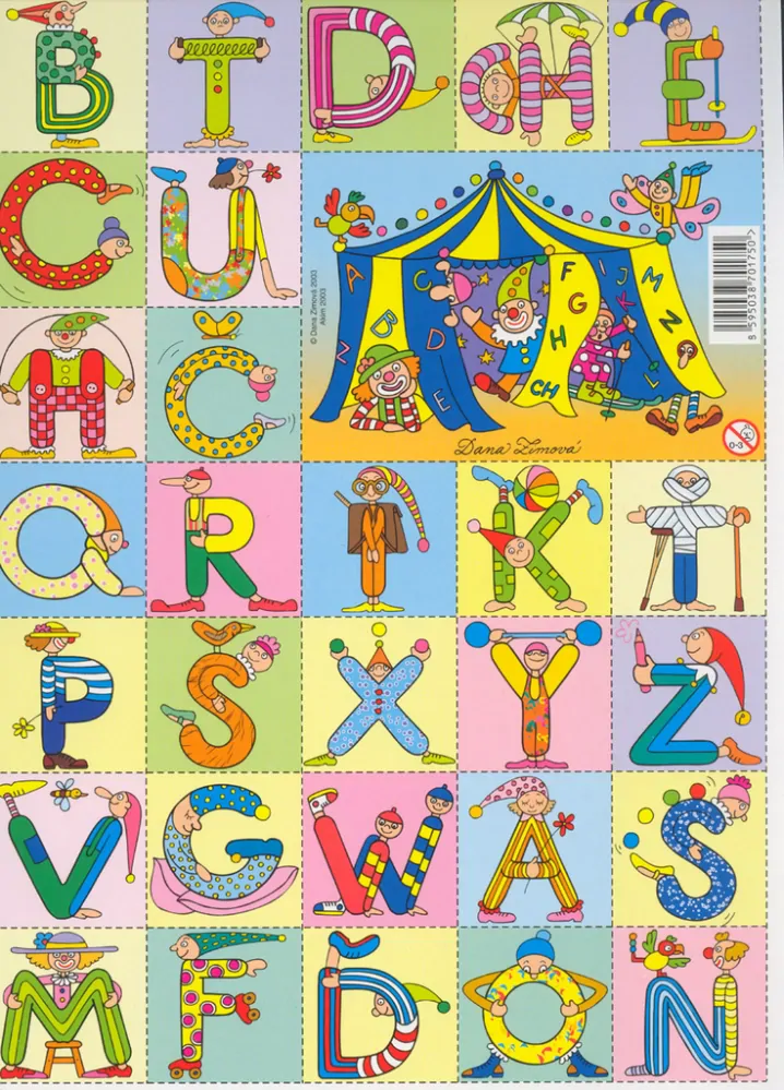 Abeceda - veselé obrázkové pexeso, jehož pomocí se děti naučí písmenka. Po vystříhání mají hráči celkem 64 kartiček