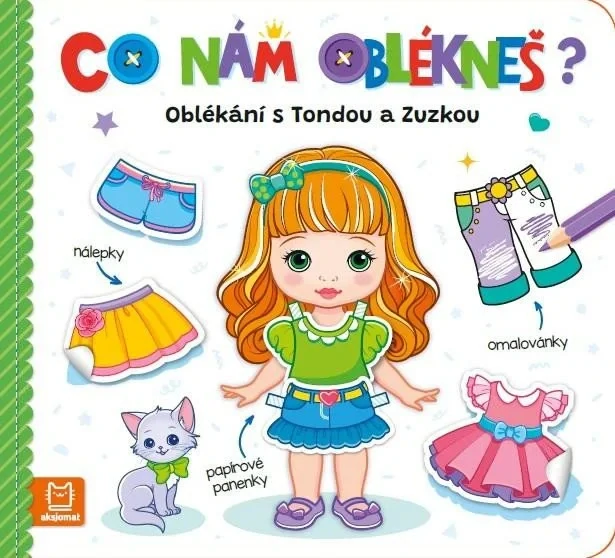„Co nám oblékneš?“ je omalovánka s nálepkami. Součástí jsou papírová panenka a panáček s oblečením. Oblékání panenek a hra s nimi děti naučí: - poznávat druhy oblečení a vhodně je vybírat, - zapamatovat si názvy barev, - zdokonalit manuální zručnost. Série „Co nám oblékneš?“ povzbuzuje děti k samostatnému oblékání a výběru oblečení.