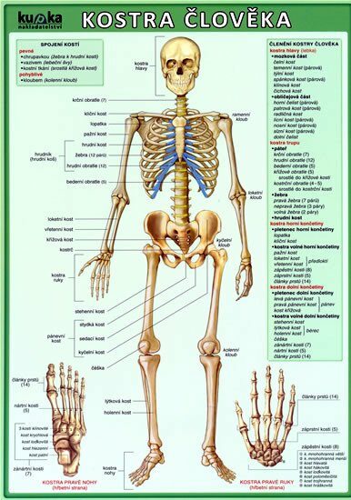 Detailní anatomické nákresy kosterní soustavy člověka. Pomůcka vhodná pro studenty základních i středních škol. Titul obsahuje základní členění kostry člověka.Vhodný doplněk k přehledu přírodopisu. Ilustrace Tereza Budilová.