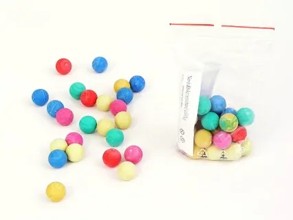 Krásné barevné cvrnkací kuličky, 20 nerozbitných kuliček v pastelových barvách, vyrobených ze speciálního těžkého plastu v igelitovém zavíracím sáčku.