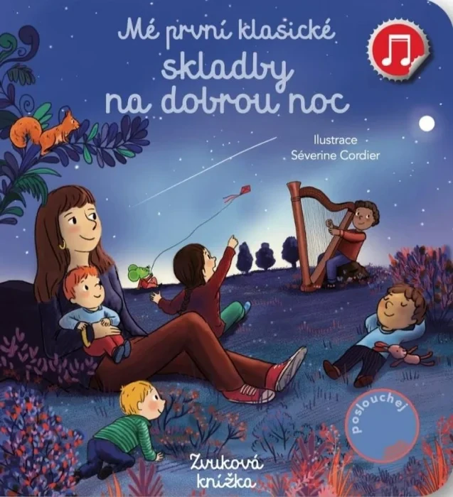 Objevte kouzlo klasické hudby s touto unikátní zvukovou knížkou pro nejmenší! Každá dvojstránka skrývá malé tlačítko, které po stisknutí přehraje nádhernou melodii na harfu. Toto knižní dílko nabízí jemný způsob, jak pomocí hudby zklidnit dítě a pomoct mu usnout. Vychutnejte si spolu s vaším dítětem uklidňující chvíle při poslechu skladeb, jako je Kánon D dur od Pachelbela, Valčík A dur od Brahmse nebo tradiční anglická píseň Greensleeves. Vysoko v oblacích, na břehu moře, u šumícího vodopádu, za letního večera nebo při tanci hvězd na jasné noční obloze - všechny tyto scenérie přináší uklidňující atmosféru díky krásným ilustracím a nádherné hudbě, které je doprovází. Zvukové leporelo je vhodné pro děti od 1 roku. Stačí stisknout tlačítko, poslechnout si melodii na harfu a nechat se unášet klasickými skladbami, které jsou ideální pro usínání.