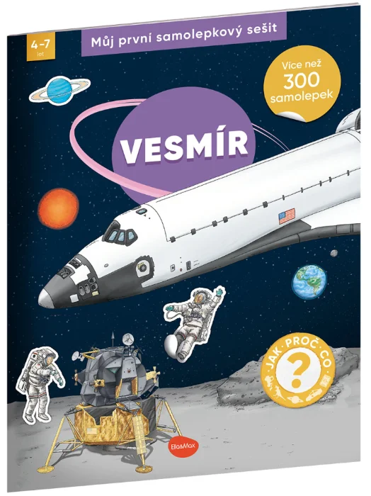 Jak? Proč? Co? V tomhle naučném samolepkovém sešitě pro děti od 4 do 7 let najdete odpovědi snad na všechny zvídavé otázky týkající se vesmíru, vesmírných těles nebo misí. Na každé dvoustraně se dočtete spoustu zajímavostí, a navíc máte k dispozici přes 300 samolepek k dotváření scén a plnění zábavných úkolů! Ty zapeklitější vám dají možná trošku zabrat, ale žádný strach – na konci knížky nechybí malá nápověda…