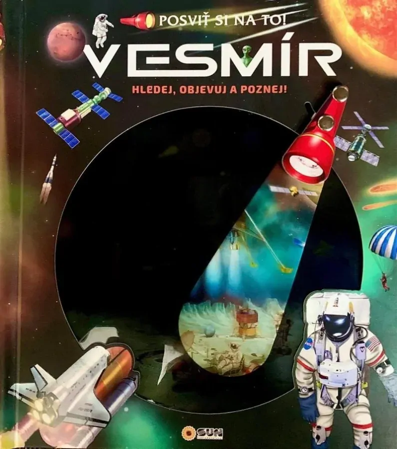 Posviť si na obrázky baterkou a objevíš všechno, co se ukrývá ve tmě. Dozvíš se spoustu zajímavostí a ještě se báječně pobavíš! Hledej, objevuj a poznej Vesmír. Zjisti jak se jmenují planety naší Sluneční soustavy, poznej a seznam se s prvními kosmonauty. Vydej se na dobrodružnou cestu na Mars. Poznej astronauty co se vypravili na Měsíc. Použij papírovou baterku, která je součástí knížky a podívej se na vše co je skryté.