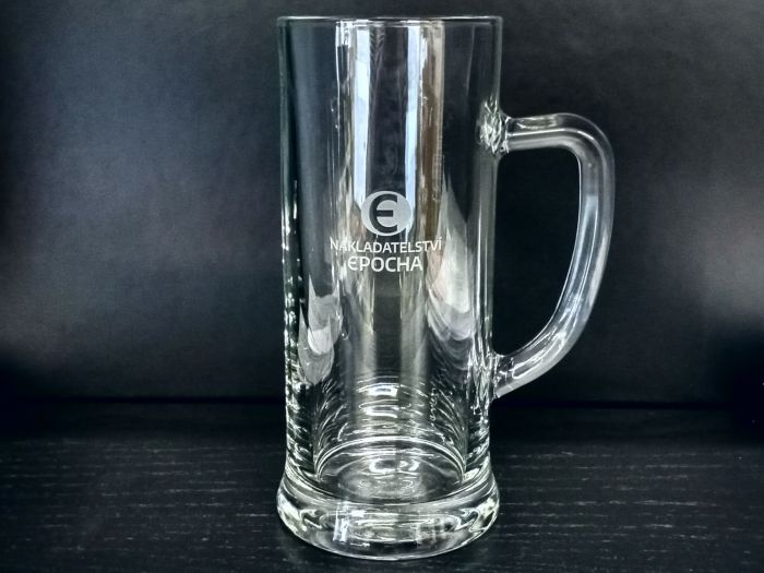 Čirý, hladký půllitr s motivem loga Nakladatelství Epocha.