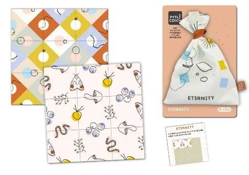 Složit z devíti kartiček čtverec tak, aby v něm obrázky na sebe správně navazovaly, dá zabrat více, než si myslíte. Zdánlivě snadný hlavolam v praktickém textilním designovém pytlíku zažene nudu doma, na výletech i na party. Vyrobeno v České republice.