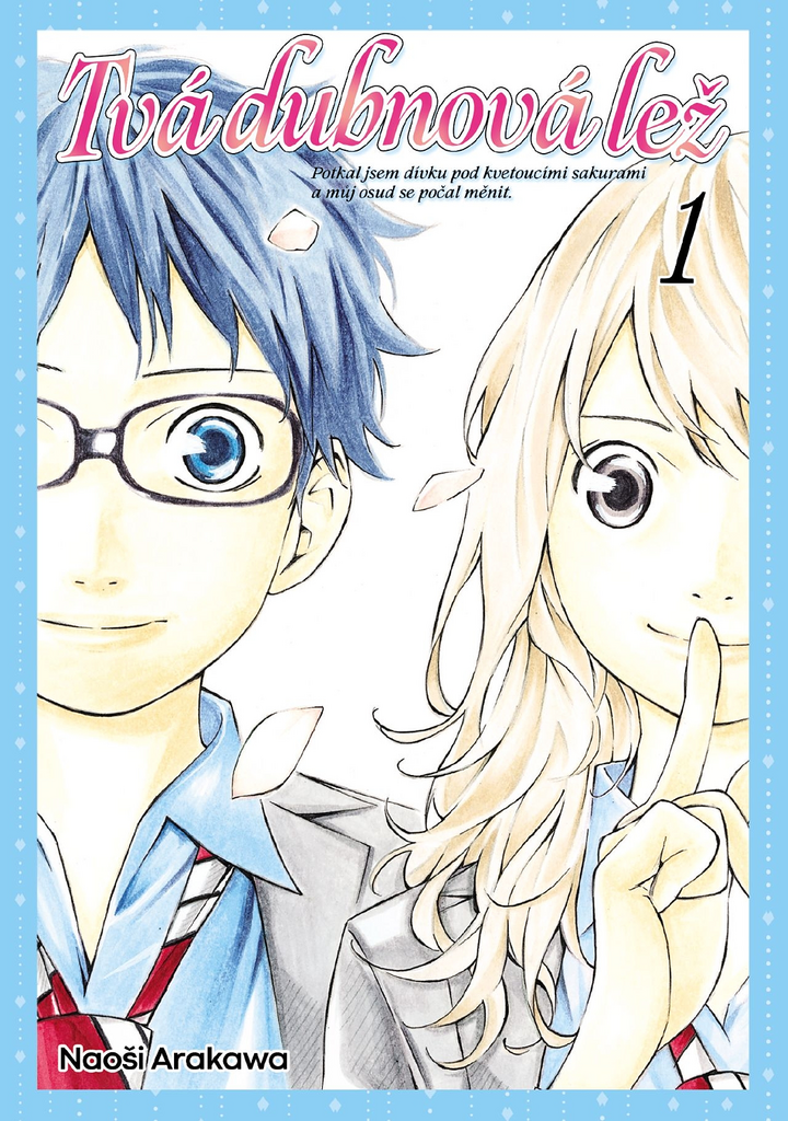 Kósei Arima je od útlého dětství uznávaným klavírním virtuosem, ale po smrti své matky ztratí schopnost hrát na klavír a uzavře se do monotónního světa, ve kterém není místo pro hudbu ani opravdovou radost. Jednoho dne se však setkává s pozoruhodnou houslistkou Kaori Mijazono – a najednou se mu do života vracejí barvy... Romantická manga, začátek nové krátké série.