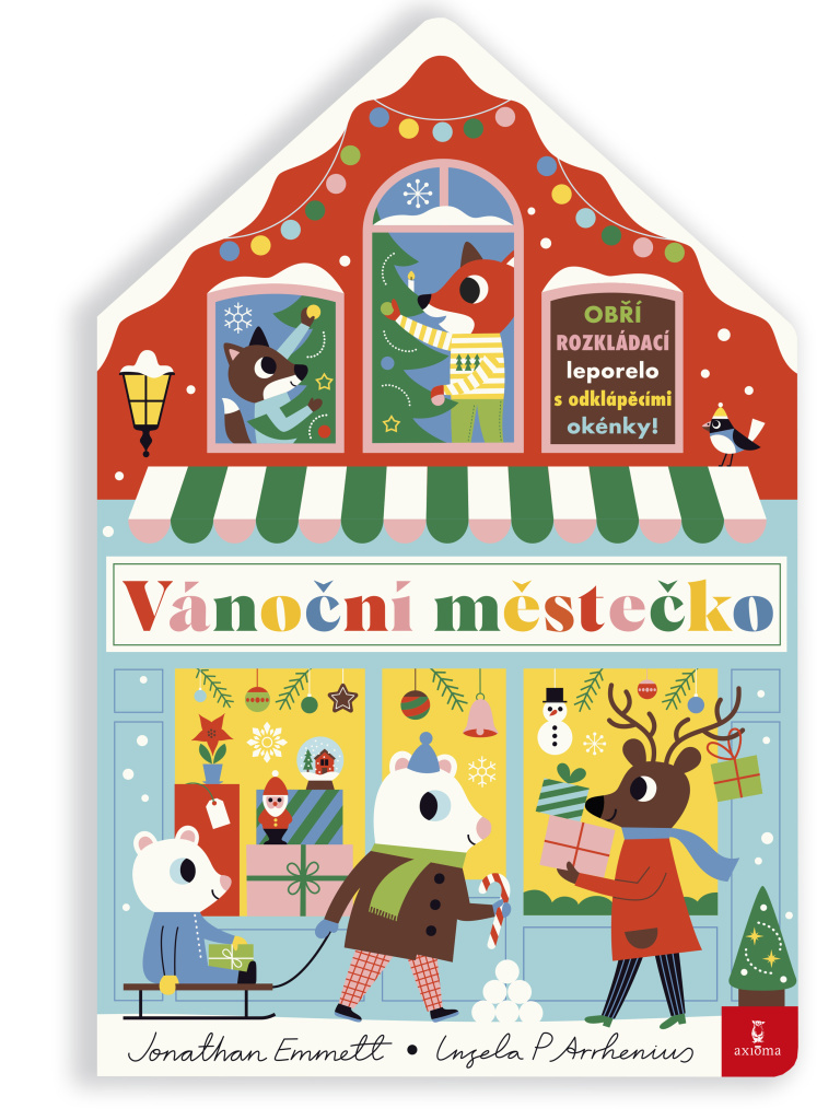 Obří rozkládací leporelo ve tvaru domečku (po rozložení má délku 2,5 m). Procházku po obchodech vánočního městečka dětem zpříjemní dvě odklápěcí okénka na každé stránce, která jim připomenou známé vánoční zvyky a aktivity. Zadní stranu leporela tvoří zimní barevná kulisa, před kterou si děti mohou zahrát třeba divadélko nebo si vymýšlet své vlastní příběhy. Leporelo může také sloužit jako dekorace do dětského pokojíčku. Rozvíjí jemnou motoriku a povzbudí děti v poznávání barev a pojmenovávání zvířátek a věcí. Je ideální hračkou pro společně strávené chvíle s dětmi od 3 do 7 let.