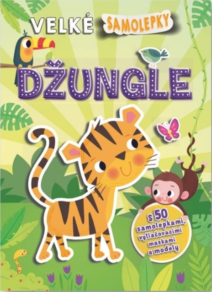 Užij si se samolepkami při nalepování do různých scenérií mnoho legrace. Zavítej do divoké džungle, kde s tygry, lvy, slony a opicemi prožiješ pořádné dobrodružství. Z pevných stránek si můžeš vymáčknout úžasné masky a zvířecí modely! Nalepováním větších i drobnějších samolepek děti procvičí jemnou motoriku a koordinaci oka a ruky a dotváření stránek též podnítí dětskou představivost a fantazii.
