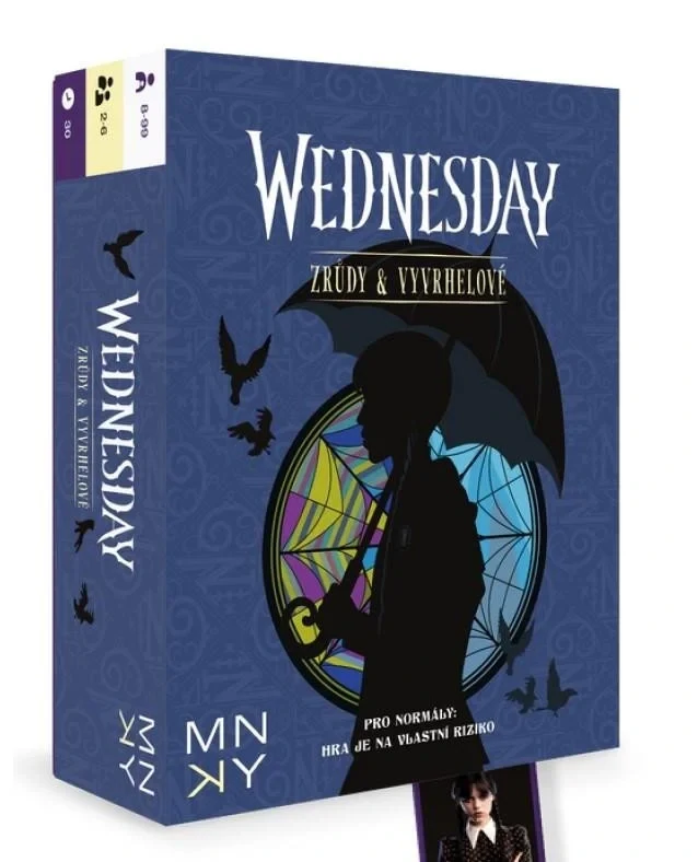 Pokuste se co nejrychleji zbavit karet s motivy vyvrhelů (např. siréna, medúza, hyde), které máte v ruce, a tak porazit své soupeře. Do hry navíc vstupují postavy známé ze seriálu Wednesday. Cílem každého kola je takticky se zbavit co největšího počtu karet a připsat si co nejméně bodů. Je možné volit ze dvou herních variant, a tak se tato karetní hra, která vás vezme do temného světa Wednesday Addamsové, jen tak neomrzí.